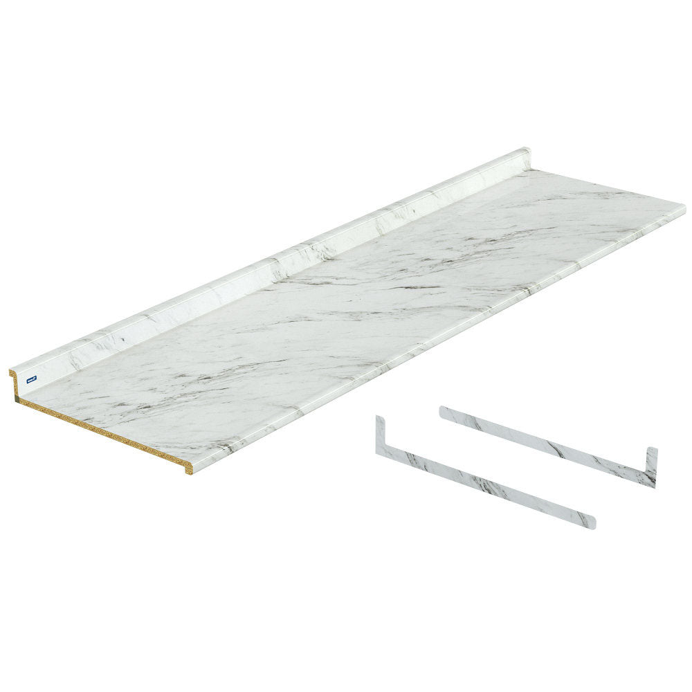 Cubierta para Calcutta Marble cocina de perfil Basik Kober, diseñada para soportar el trabajo diario de una cocina residencial no expuesta a la intemperie. Está fabricada con sustrato natural y laminado de alta presión (HPL) impermeable y antibacteriano, material que evita la proliferación de bacterias y malos olores. Además, es resistente a manchas, golpes y altas temperaturas. Sus dimensiones son 240 x 64.5 x 10.60 cm con un espesor frontal de 3.5 cm y una superficie en color blanco que evoca al mármol y la hace compatible con cualquier decoración de cocina. Incluye 1 par de cubrecantos.